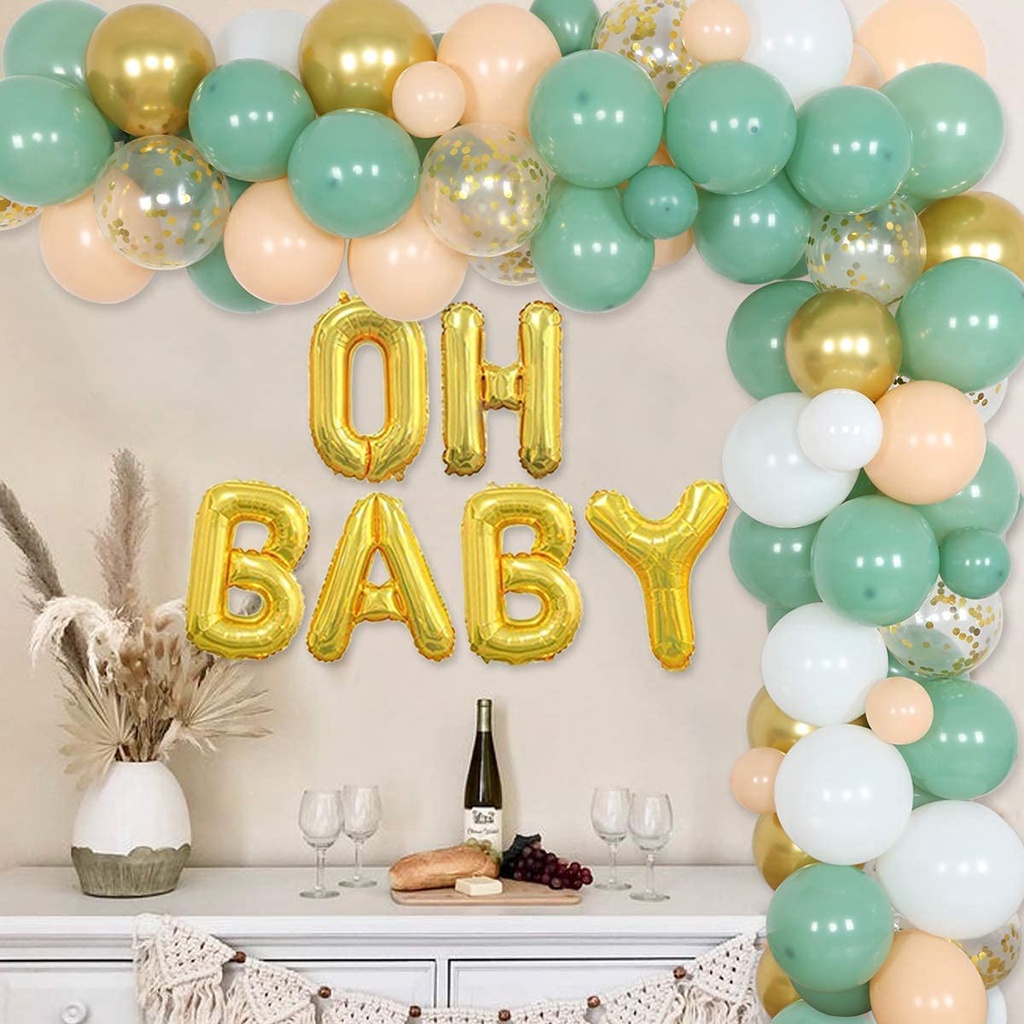 POMNUG Mint Green Balloon Garland Kit 117 Pcs Baby Shower Decorations Set with Mint Green and Gold Balloons Confetti Balloons olden Pine Needles Leaves for Baby Showers Birthday Party Decorations. Sage Green Balloon Arch Kit Retro Olive Green Balloons Baby Shower Bridal Shower Wedding Birthday Party Decorations. See more ideas about green baby shower green baby baby shower. See more ideas about green baby shower pink and green lilly party. Aug 19 2019 - Explore SS Eventss board Purple and Green baby shower on Pinterest. It makes the party decorations look cohesive. Adding in a shape to work around like in this mint green baby shower makes it even more fun and coordinated.